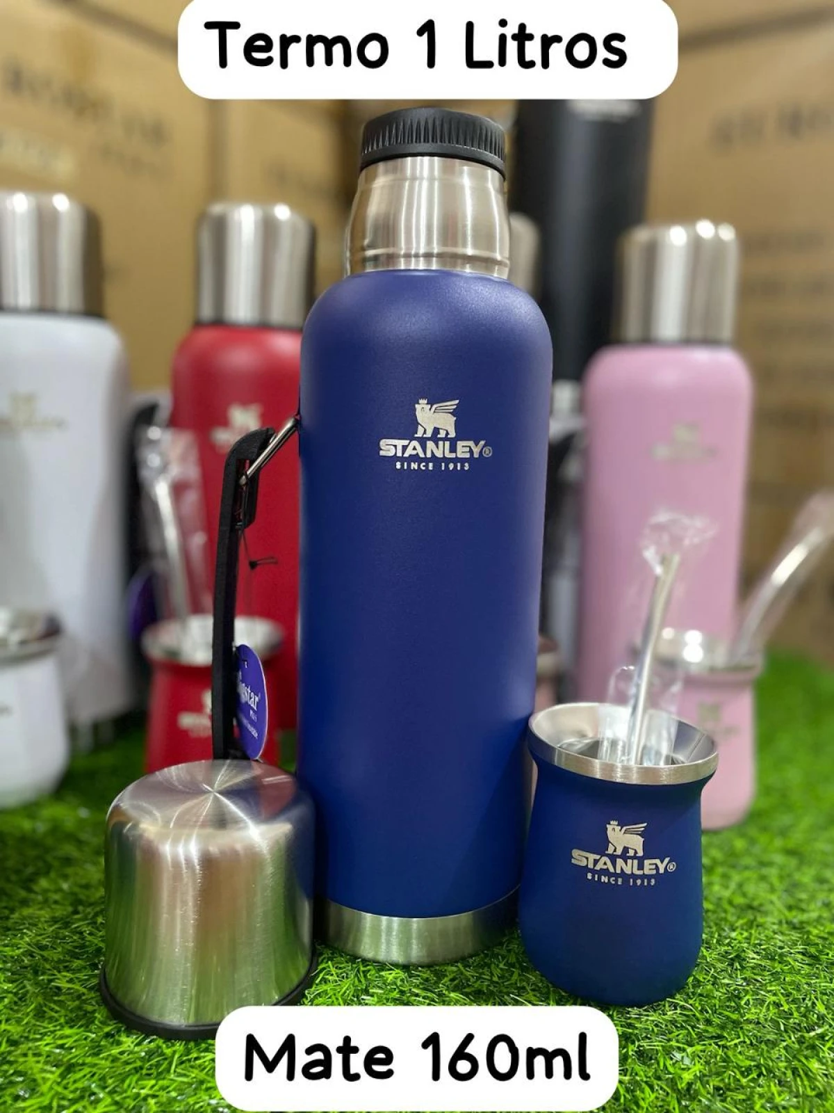 COMBO SET MATERO STANLEY: MATE + NUEVA EDICIÓN TERMO 1L CON PICO CEBADOR Y MANIJA.
