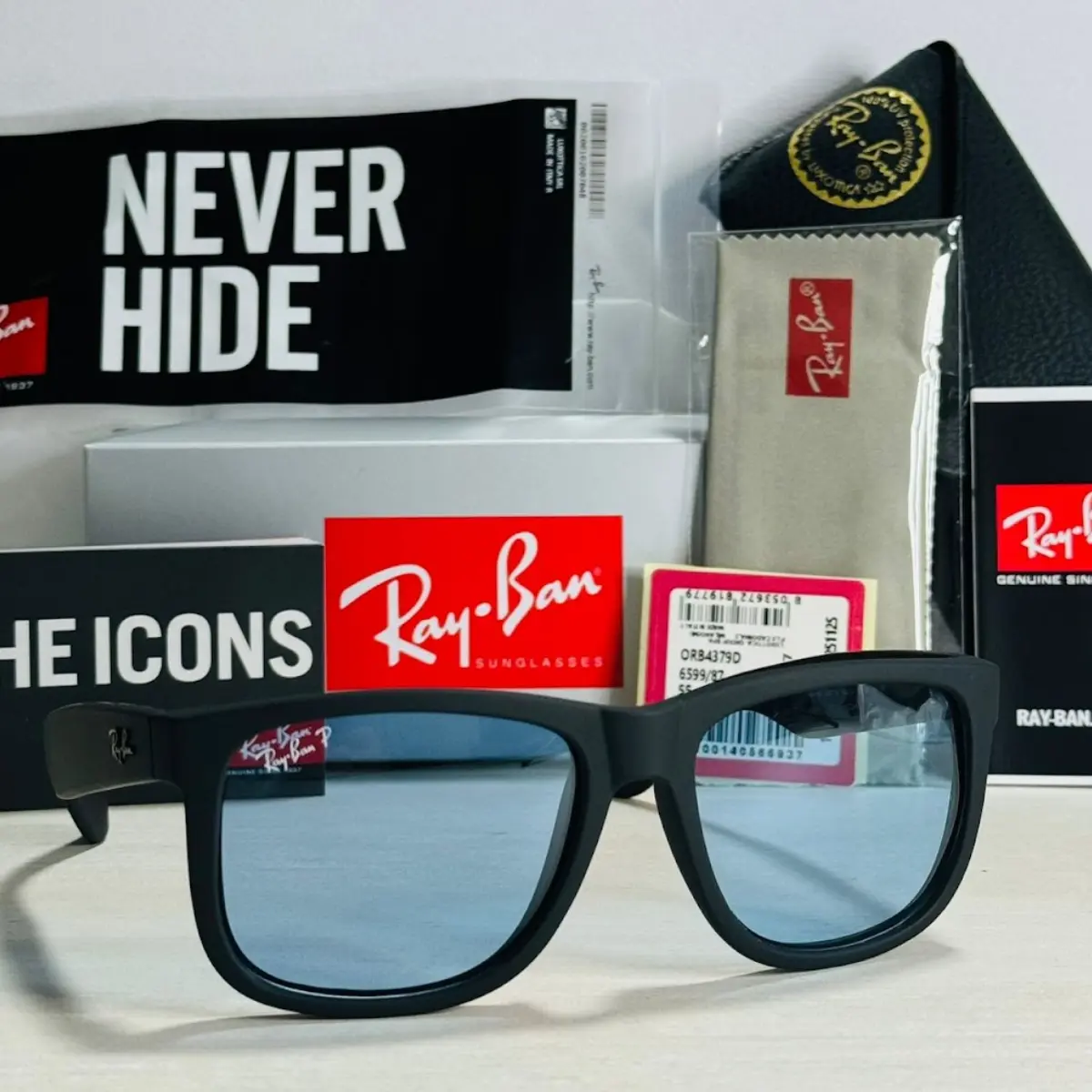 Lentes de Sol Ray Ban. Justin Negro Brillo Verde Polarizado.